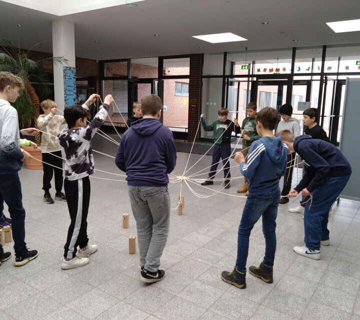 Heute hat die Klasse 6d unter Leitung von Frau Temps im Forum einen Fröbelturm im Forum gebaut. Das ging nur gemeinschaftlich im Team...