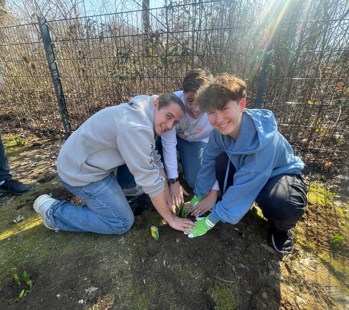 Unsere Schule setzt ein Zeichen für Toleranz und Vielfalt. Auf Initiative der Schülervertretung und des Ausschusses „Lebendige Demokratie“ haben Schülerinnen und Schüler insgesamt mehr als 300 Narzissen auf dem Schulhof gepflanzt.