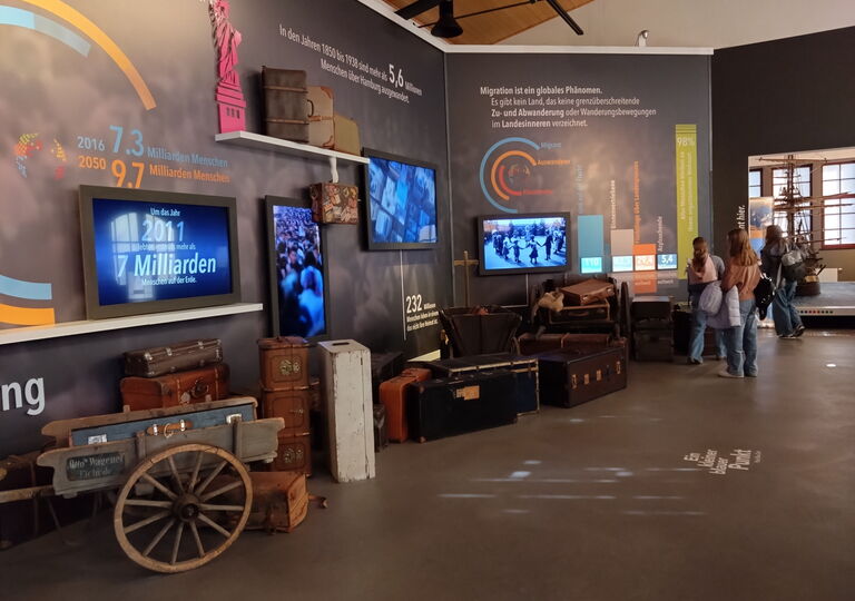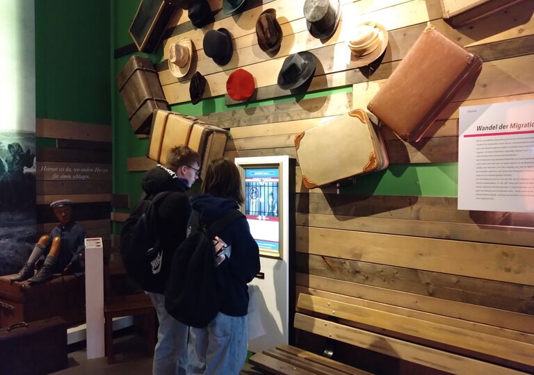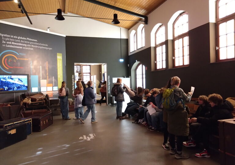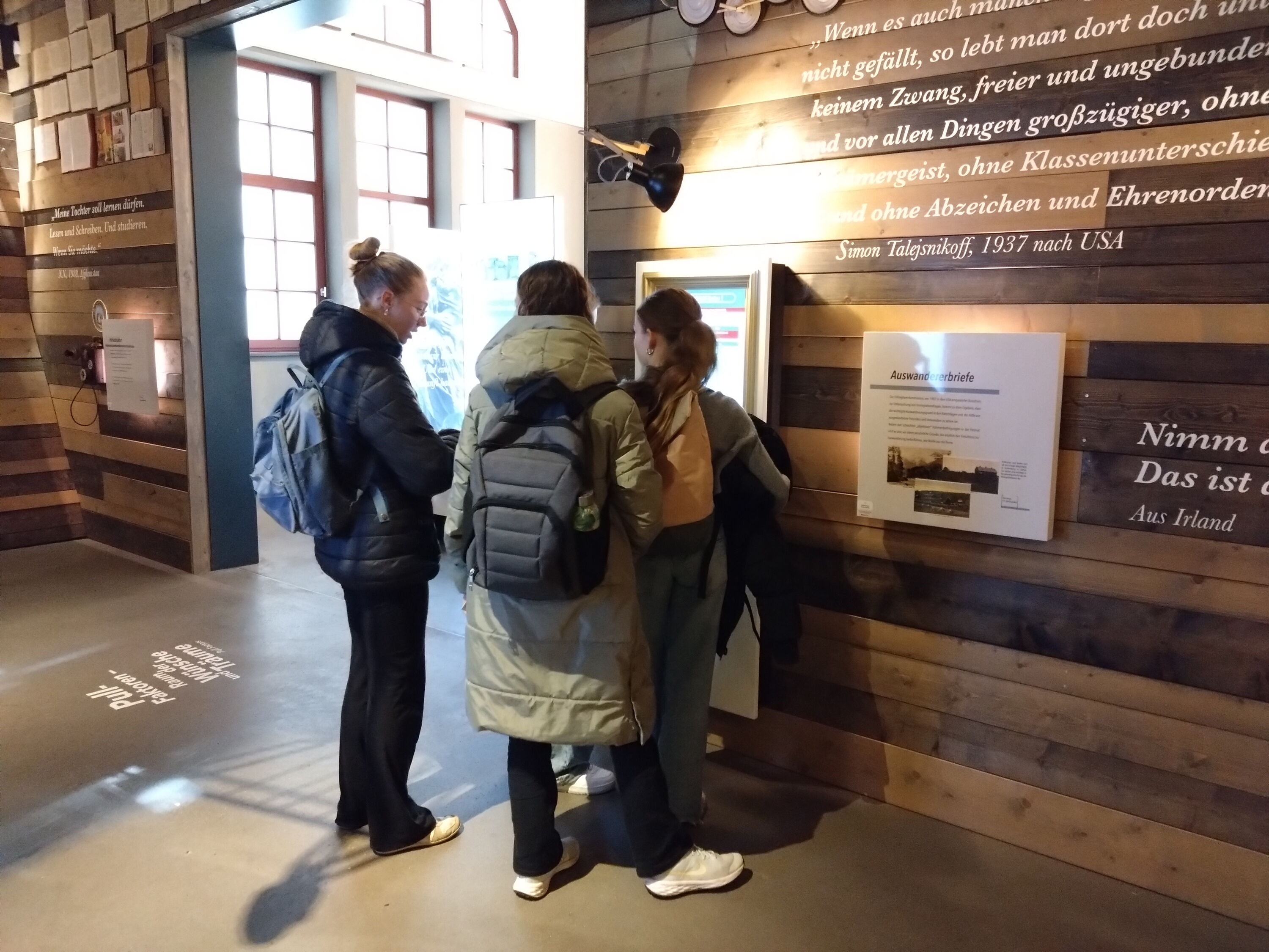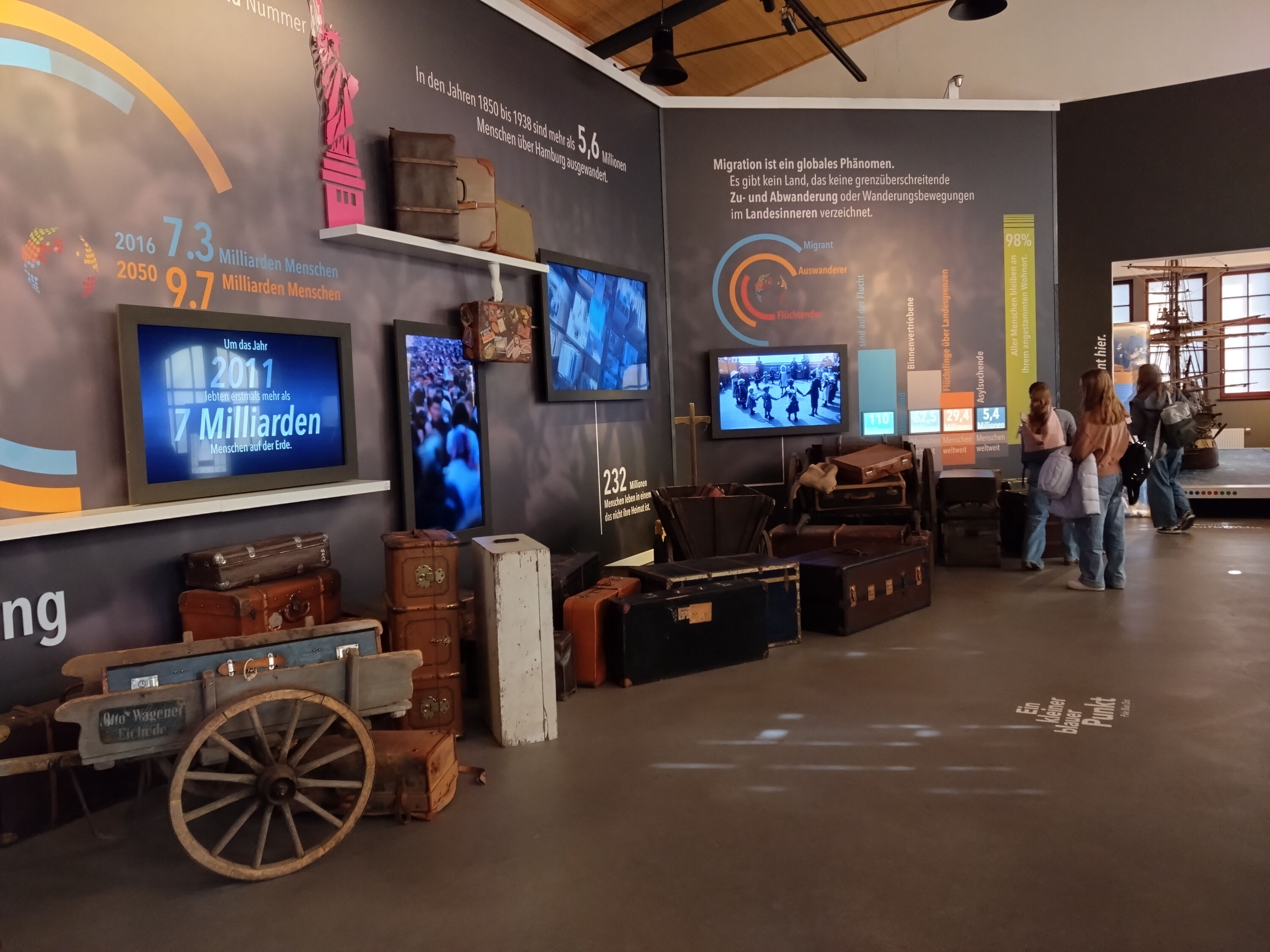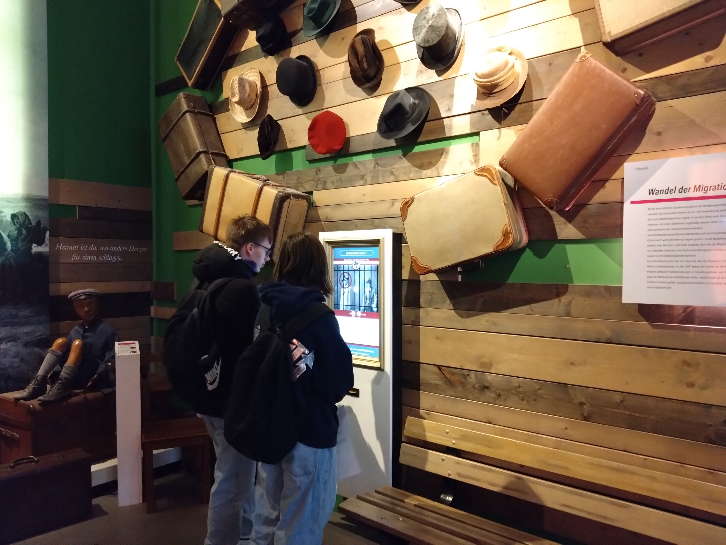 In Haus 1 wurde der Aufbruchsort, die BallinStadt in Hamburg-Veddel sowie das Leben ihres Gründers Albert Ballin vorgestellt. Vorbei an einem großen Schiff ging es dann ins Haus 2, wo die Schüler mehr über Migrationsgeschichte und die verschiedenen Pull- und Push-Faktoren für Migration lernten. Hier konnten die Schülerinnen und Schüler außerdem in die Rolle eines Auswanderers bzw. einer Auswanderin schlüpfen, mussten verschiedene Entscheidungen treffen, welchen Weg sie als nächstes einschlagen wollen, und haben am Ende erfahren, ob ihr Charakter die Reise wohlbehalten überstanden hat. In Haus 3 befand sich ein weiterer Ausstellungsraum, der sich dem Namensgeber der BallinStadt Albert Ballin widmete.