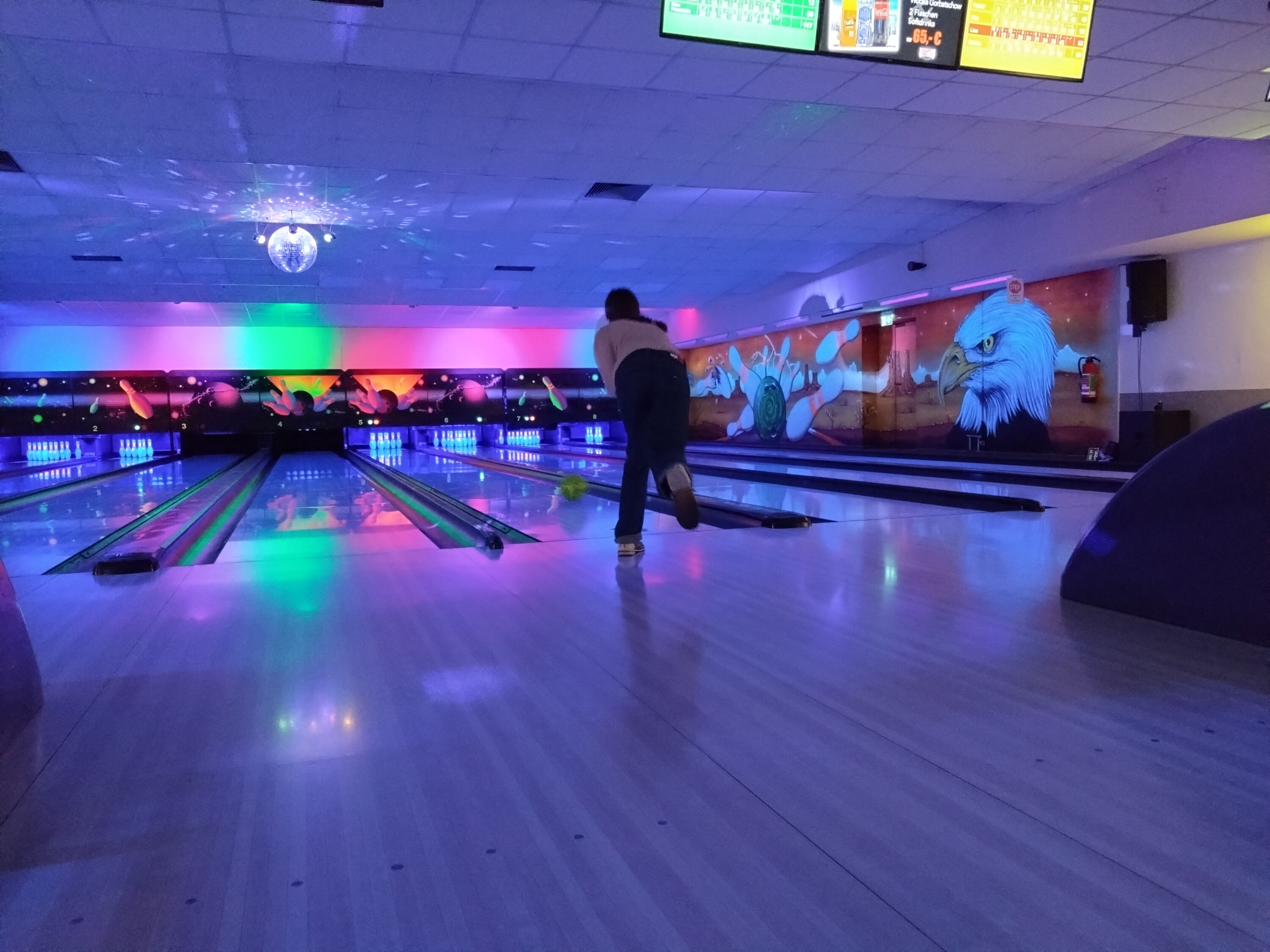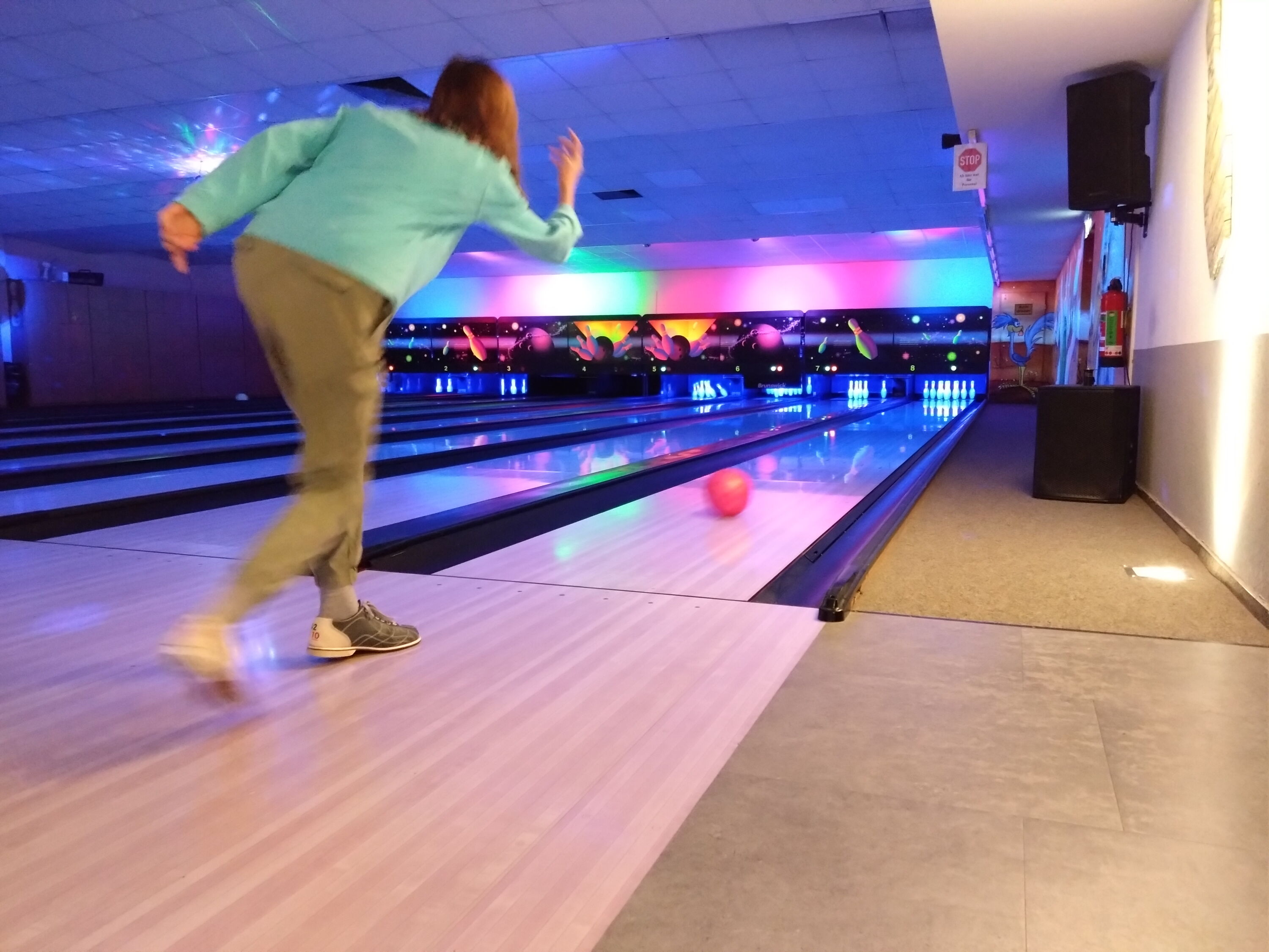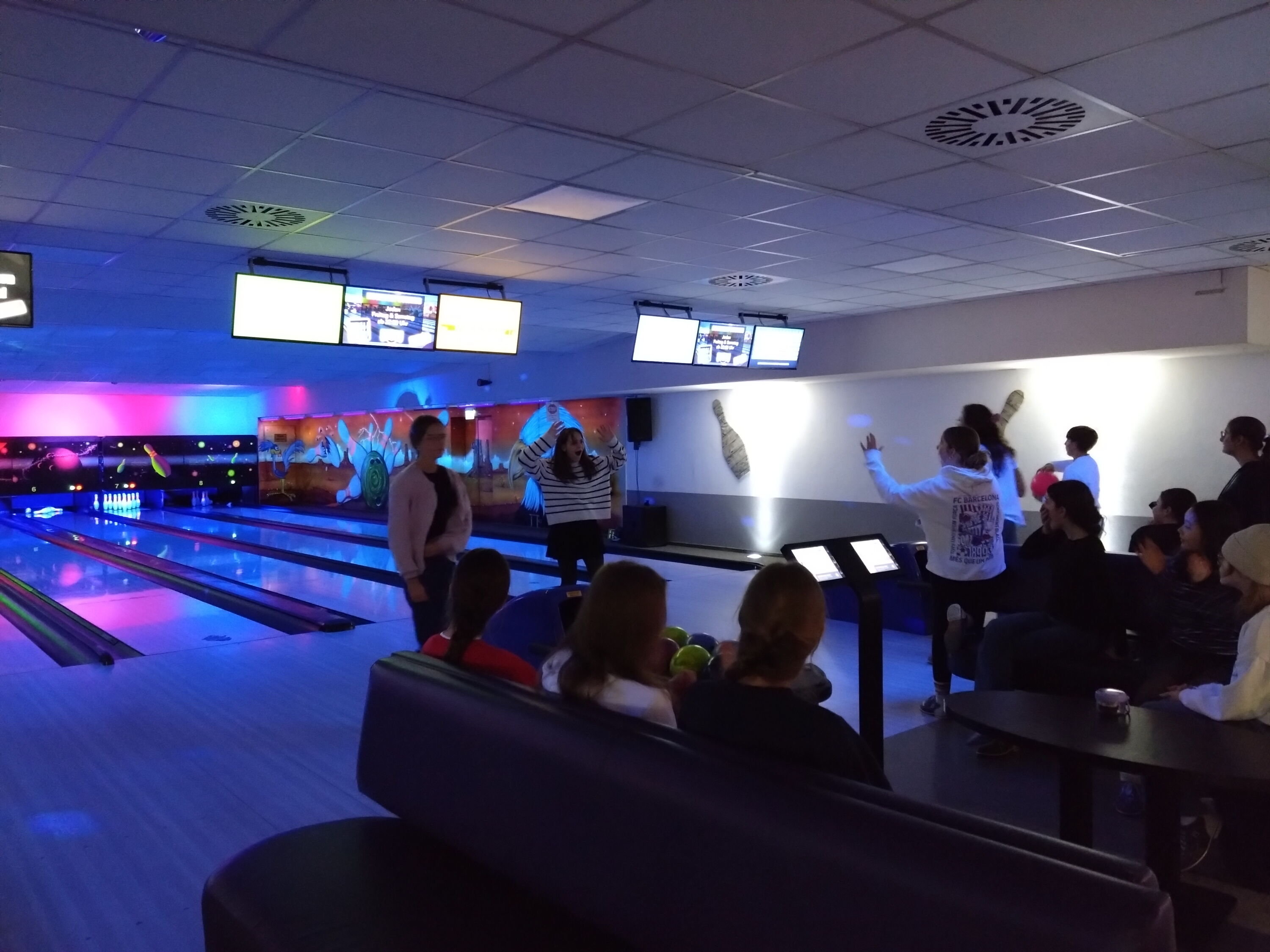 Nach einer kleinen Einweisung für die Bowlingbahnen sowie die Einteilung der Spieler und Spielerinnen auf die vier Bahnen, legten die Schüler und Schülerinnen sowie ihre zwei Lehrer in 5er- und 6er- Gruppen mit dem Spiel los.