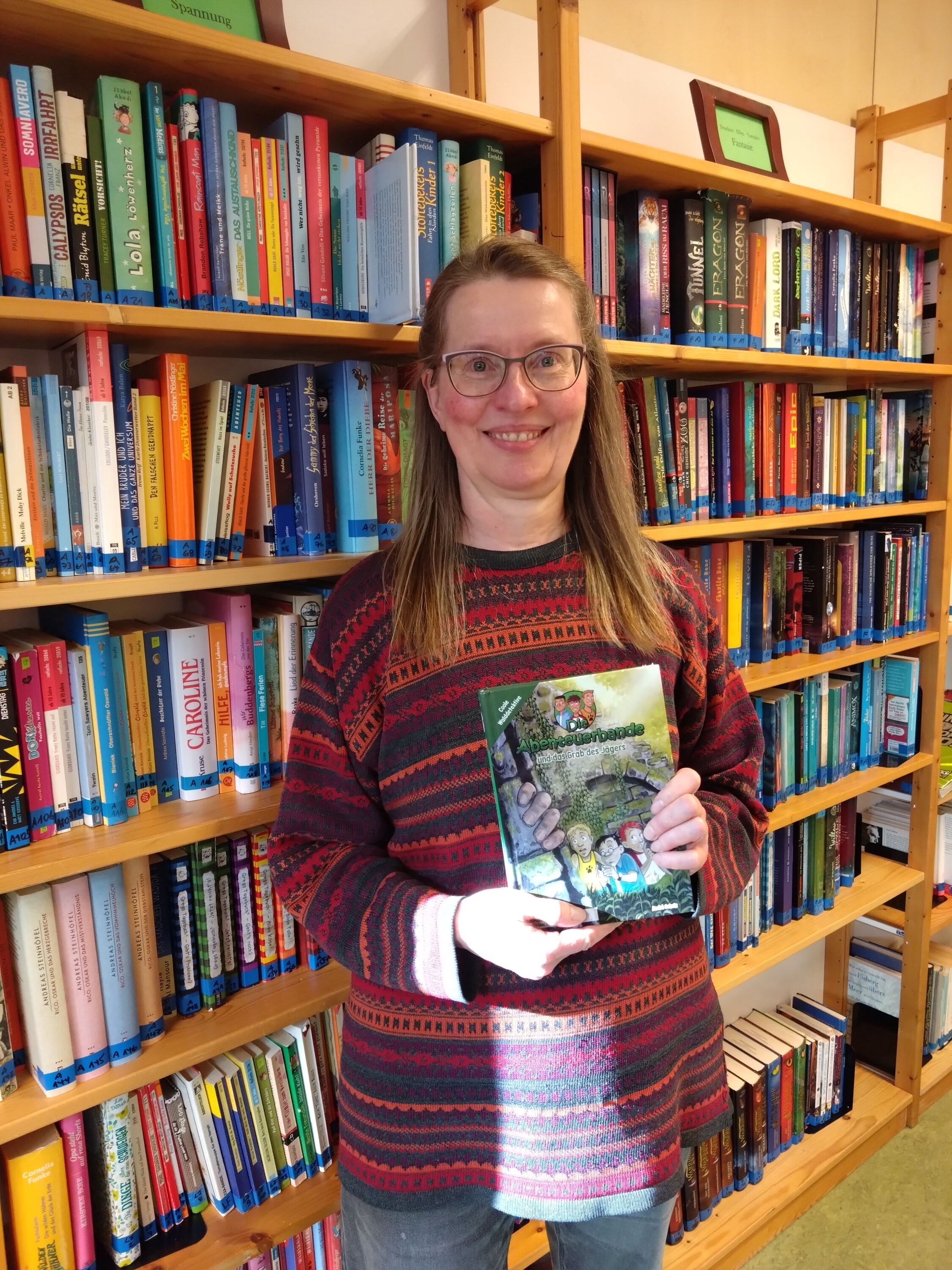 Selber hat sie zwei Kinder an unserer Schule. Sie freut sich sehr, dass das Angebot der Bücherei in der 20- Minuten- Pause so super von den Schülern angenommen wird. Sie liest selber gerne historische Romane, wie z. B. "Quo vadis?". In der Bibliothek findet sie die Pferdebücher gut, welche es neben Abenteuer-, Science-Fiction-, Fantasy-, Krimi- und Wissensbüchern sowie Lexika und Büchern für die Fremdsprachen Französisch, Latein und Englisch in unserer schönen Schulbücherei gibt. Egal ob Orientierungsstufe oder Oberstufe - es ist für alle etwas dabei!