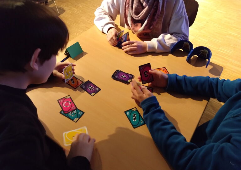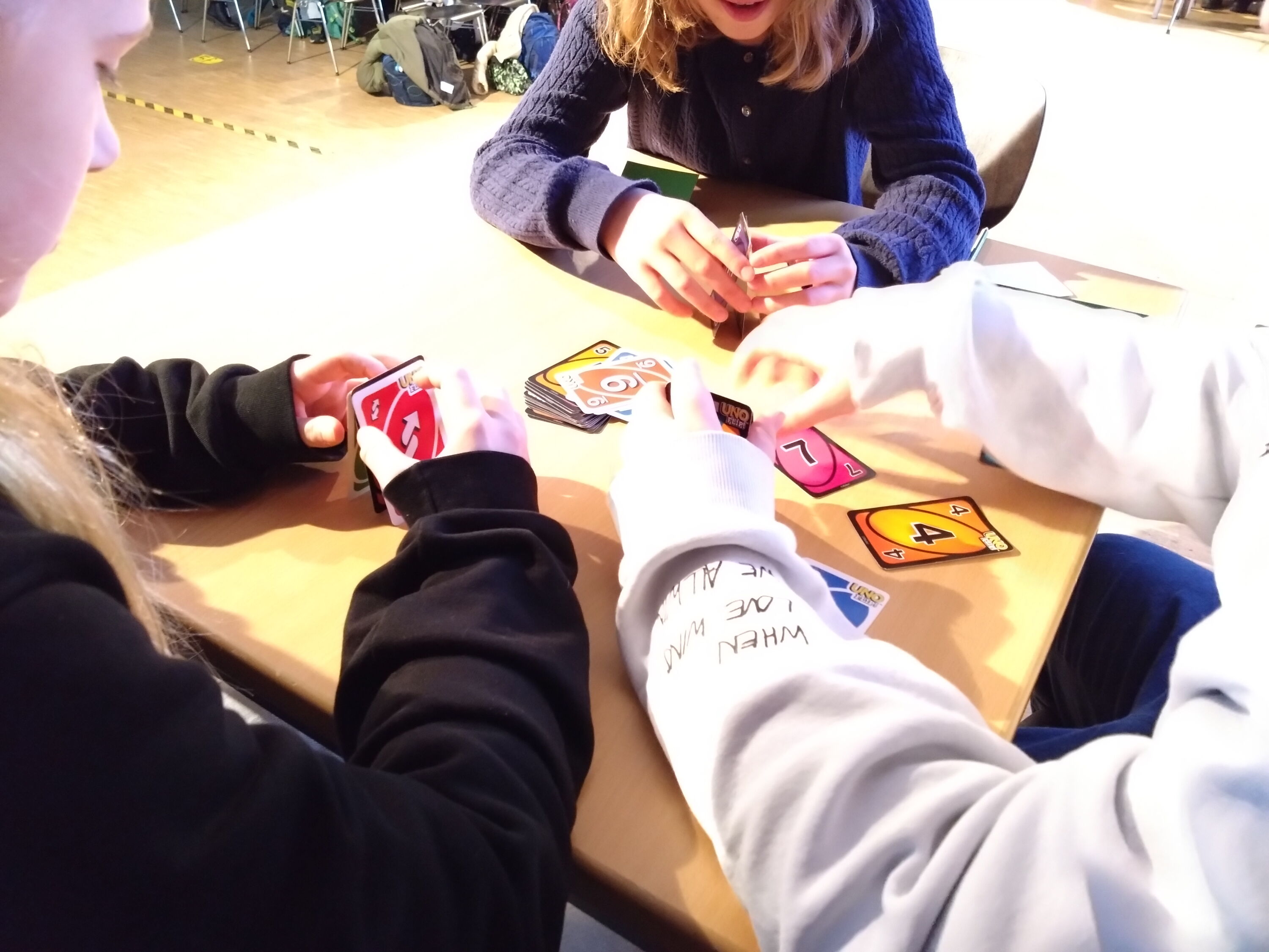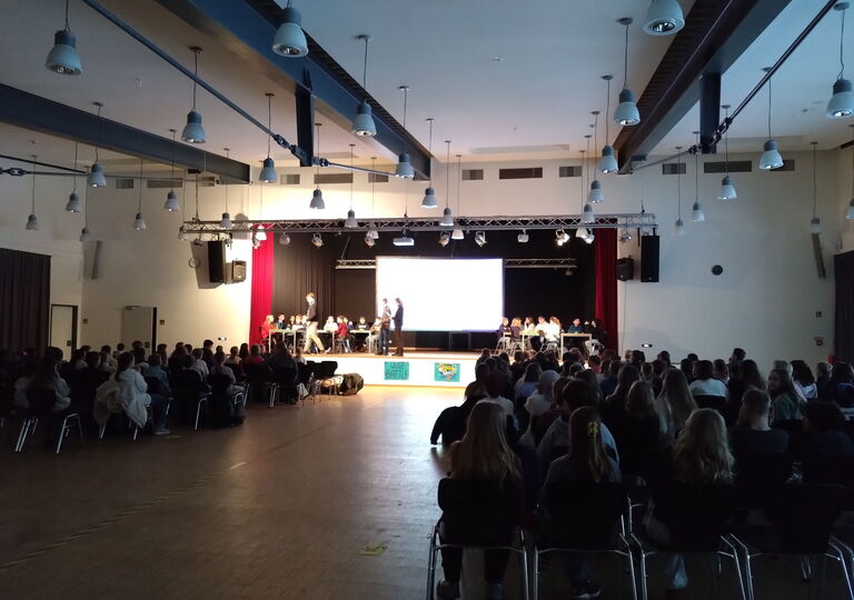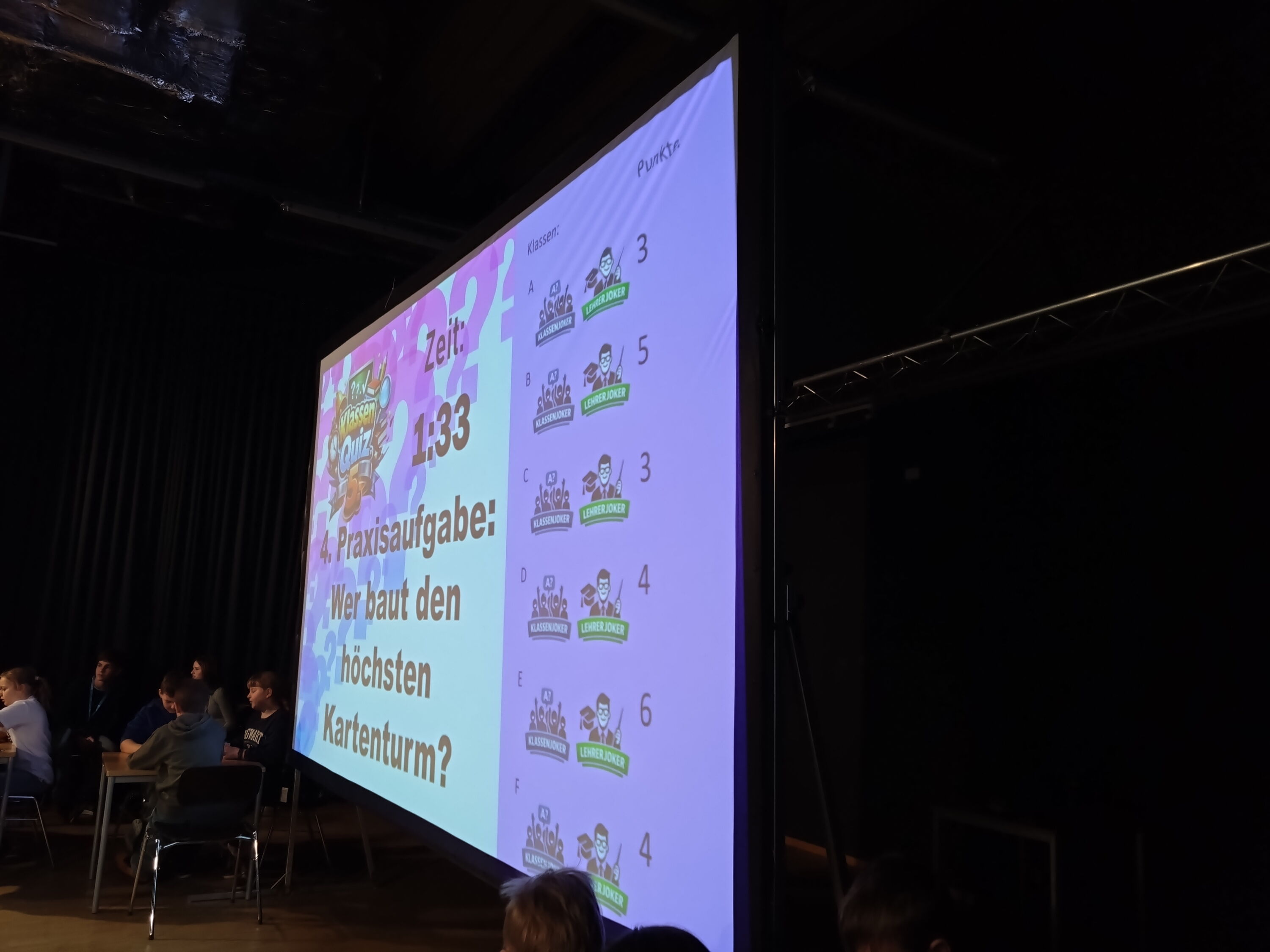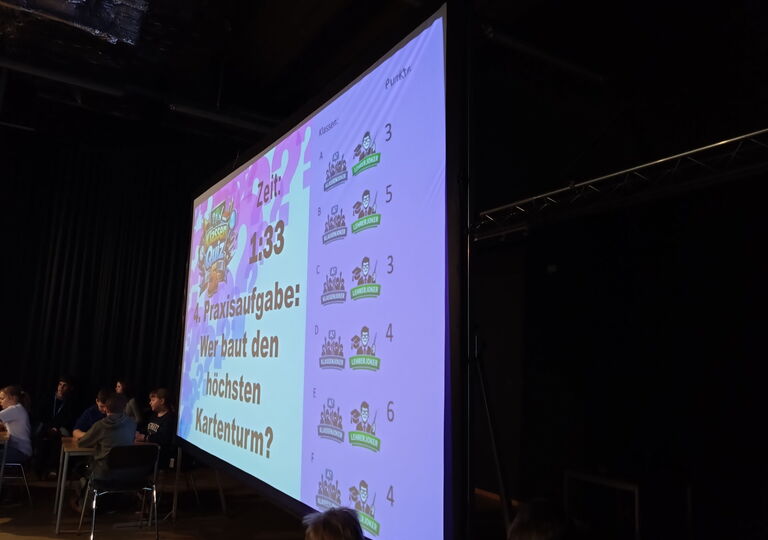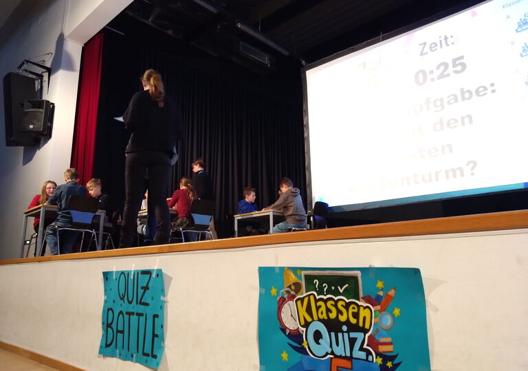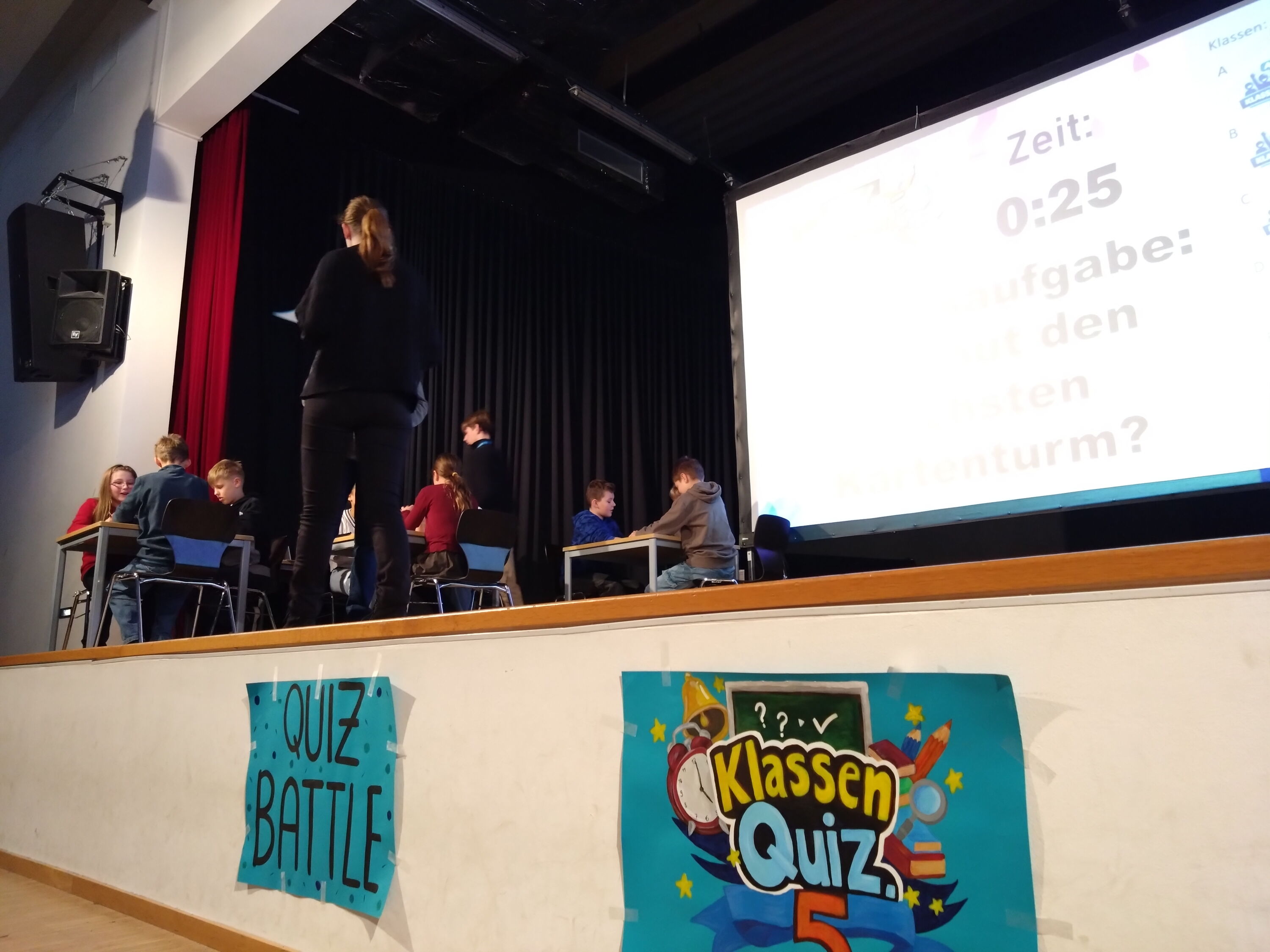 In der Stunde vor den ersten Zeugnissen zum Halbjahr stellten sich die 5. Klassen unseres Gymnasiums einer spannenden Herausforderung - dem Brain Battle. Dieses Projekt wurde von den Schülerpaten des 9. und 10. Jahrgangs initiiert und durchgeführt. Jede Klasse trat mit einem Dreier-Team, das sich durch eine Vorrunde qualifiziert hatte, an und versuchte nun verschiedene Aufgaben zu lösen. Neben Wissensfragen und Geschicklichkeit beim Bauen eines Kartenturms war auch ein schauspielerisches Talent bei der pantomimischen Darstellung einer Lehrkraft gefordert. Alle beteiligten sich mit Feuereifer an dem Wettkampf, um den Sieg für ihre Klasse zu holen.