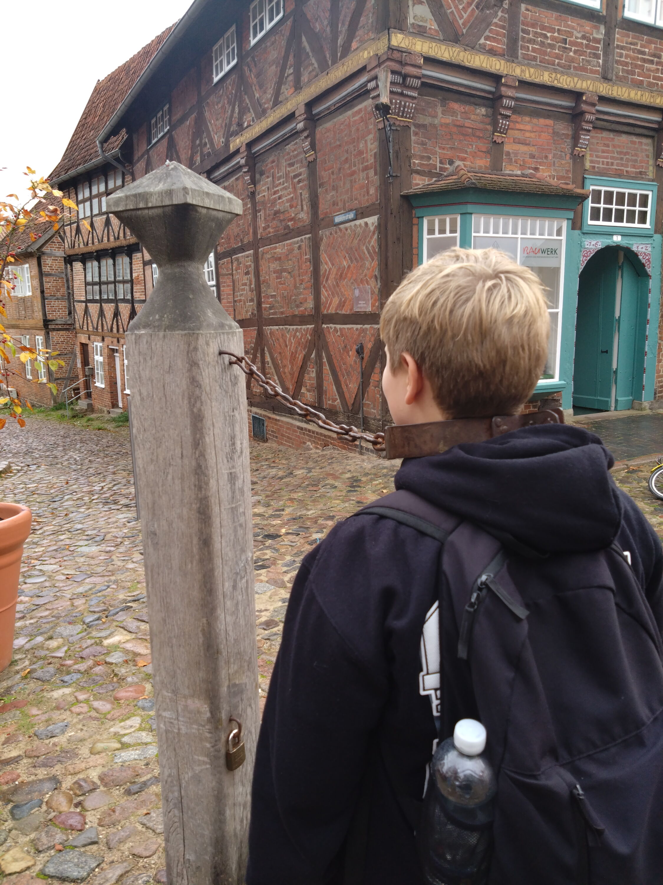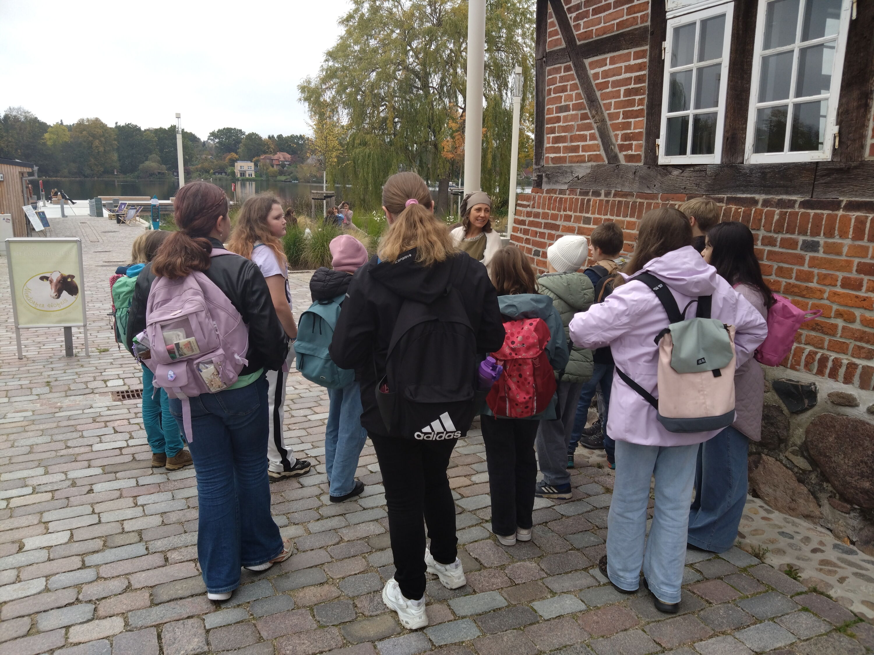 Die Klasse 5c startete am Mittwoch, den 15.10.2025, zu ihrer Kennenlernfahrt nach Mölln. Nach nur 40 Minuten Busfahrt erreichten wir den Tannenhof und konnten direkt unsere Zimmer beziehen - gar nicht so einfach mit diesen riesigen Laken! :-D Nach einer Stärkung zum Mittag brachen wir auf, um die Stadt Mölln zu erkunden. Unsere Gruppe hatte zwei unterschiedliche Führungen: die eine Hälfte der Klasse ging mit der Frau des Apothekers, die andere Hälfte folgte dem Nachtwächter von Mölln. Beide Figuren erzählten uns allerlei Schauriges und Lustiges über Mölln, wie es im Mittelalter gewesen ist, und hatten die ein oder andere Geschichte über Till Eulenspiegel parat.