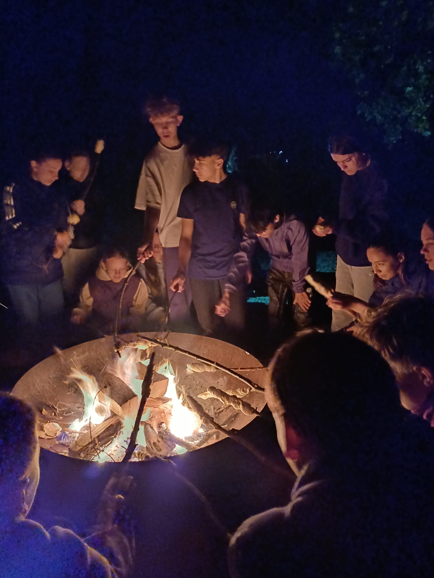 Hier haben wir Stockbrot gemacht, mit unseren Lehrerinnen gesungen und zum Schluss hat jeder erzählt, was er oder sie die Woche über am schönsten fand. Dazu haben wir eine Handvoll „Zauberpulver“ ins Feuer geworfen. Was das wohl war? Es hatte jedenfalls etwas Magisches.
