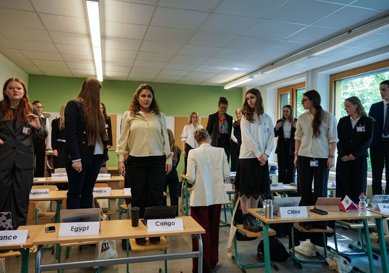 Zum vierten Mal seit der durch Covid-19 zwangsverordneten Pause hat unsere Schule wieder an der Simulation MUNOL teilgenommen. Hier ist es die Aufgabe einer Delegation aus Schüler/-innen, ein Land zu vertreten und in verschiedenen Ausschüssen das Beste für ihr Land zu erreichen. Und dazu werden noch die Fremdsprachenkenntnisse ordentlich trainiert, denn die gesamte Konferenz findet auf Englisch statt.